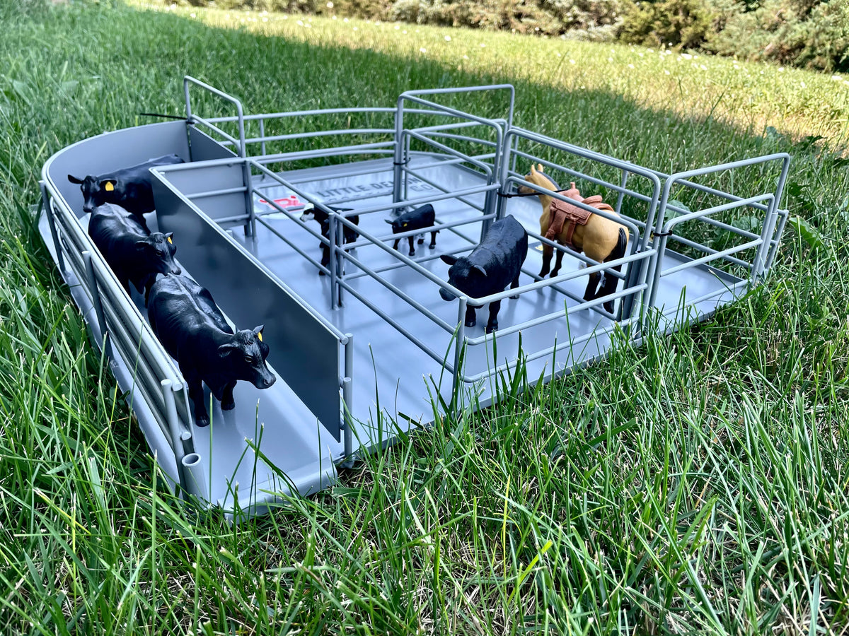 Keep your herd organized with the Sweep Alley by Little Buster Toys. It easily hooks to Little Buster Panels and Squeeze Chutes!